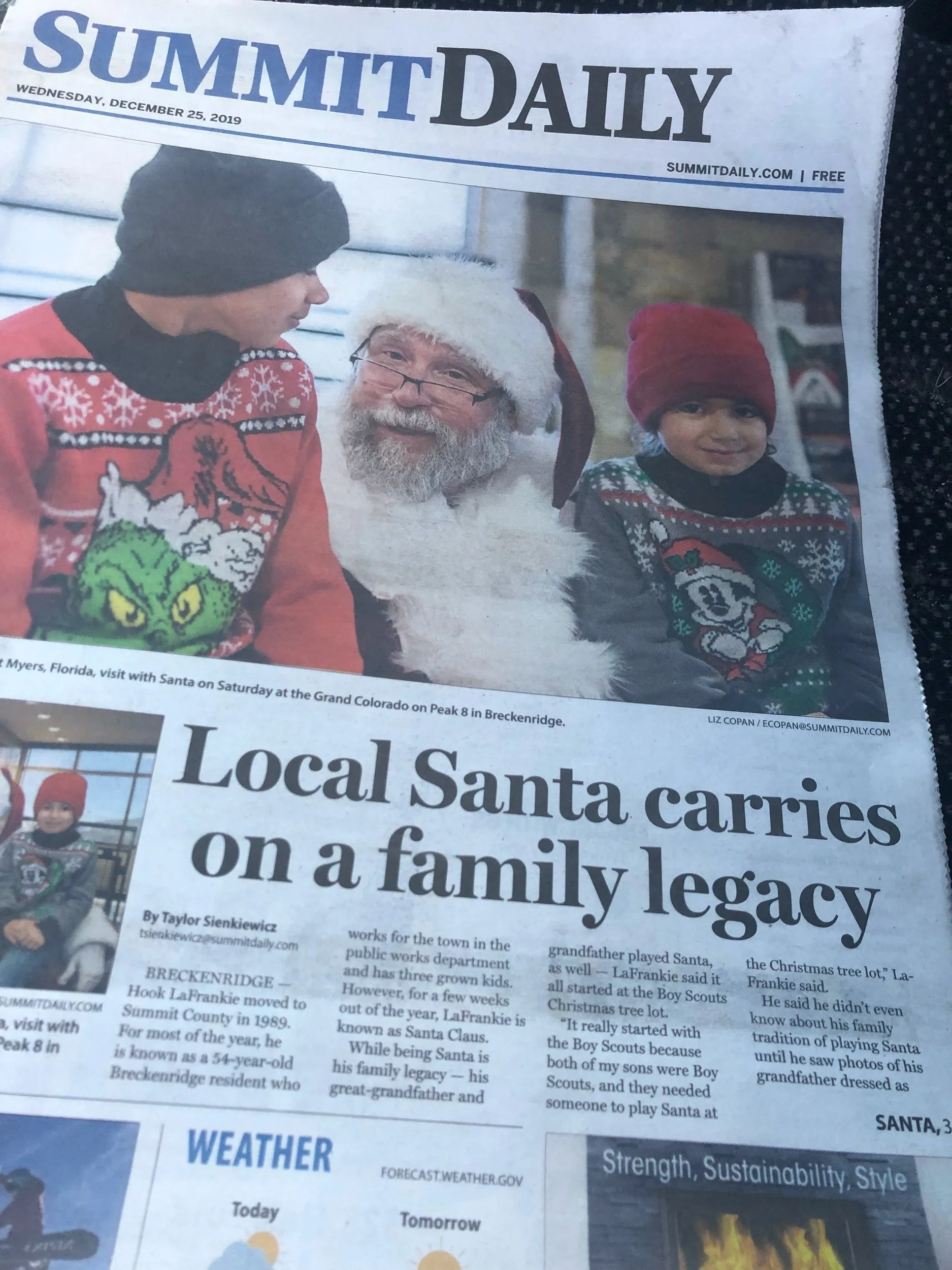 Summit County local who loves to spread joy during the holiday season. A 3rd generation Santa who loves bringing smiles to the faces of others, and hopes to create extra special memories for kids of all ages.
